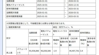 2026年04月23日、注目していた韓国『現代自動車』の2026年第1四半期の業績が出ました。以下をご覧ください。2026年第1四半期総売上:45兆9,388億8,600万ウォン(3.4%)営業利益:2兆5,146億8600万ウォン(-30...