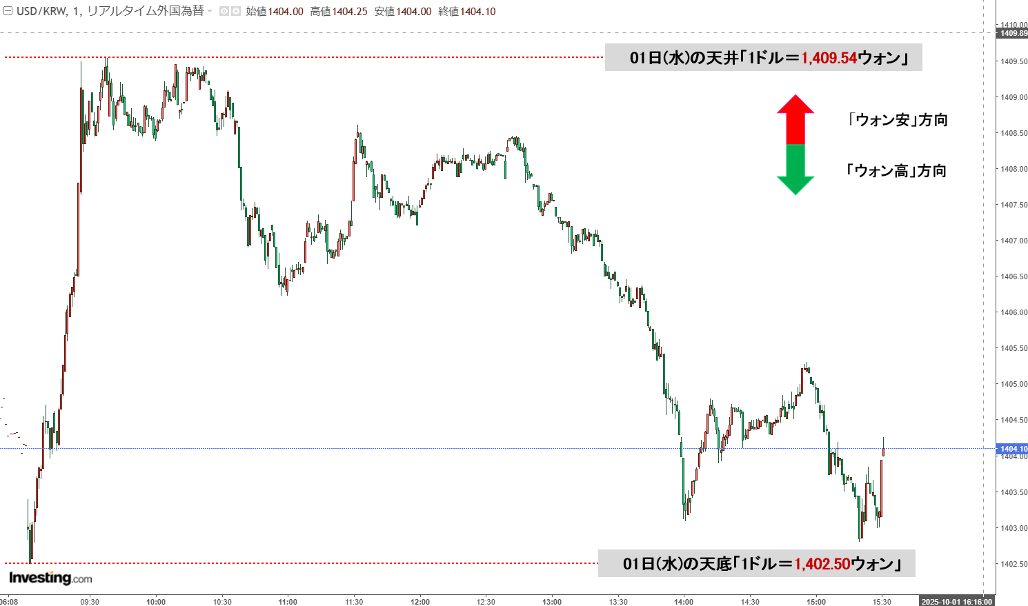 「ドルウォン」10月02日(木)初動・「1,403ウォン」