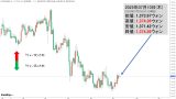 ローソク足1本が1分間の値動きを示す「1分足」で見ると以下のようになります。