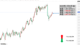 本記事でご紹介している「なんだこりゃ」なローソク足の下端がちょうど14日の奇妙なローソク足の下端とほぼ揃っているのです。