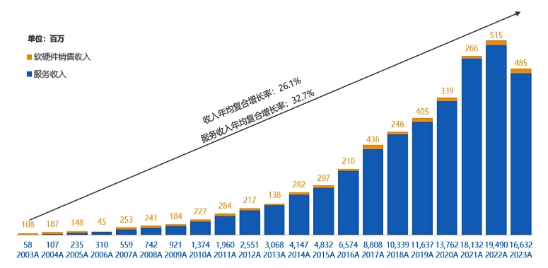 サービス収入の売上が2023年時点で「166億3,200万元」もあります。ざっくり21倍で換算しても売上が「約3,492億円」です。