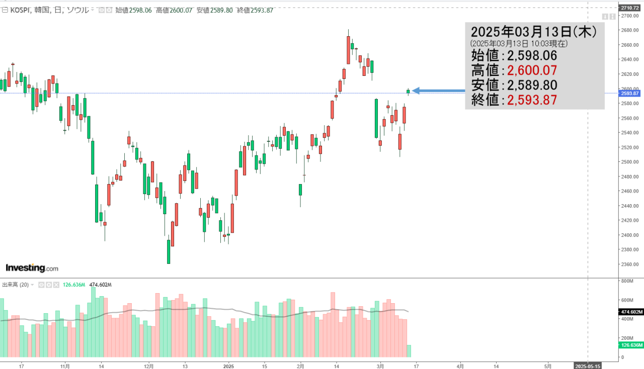 2025年03月13日(木)の韓国株式市場が締まりましたので以下の記事を制作いたしました。本記事と併せてお読み頂ければ幸いです。