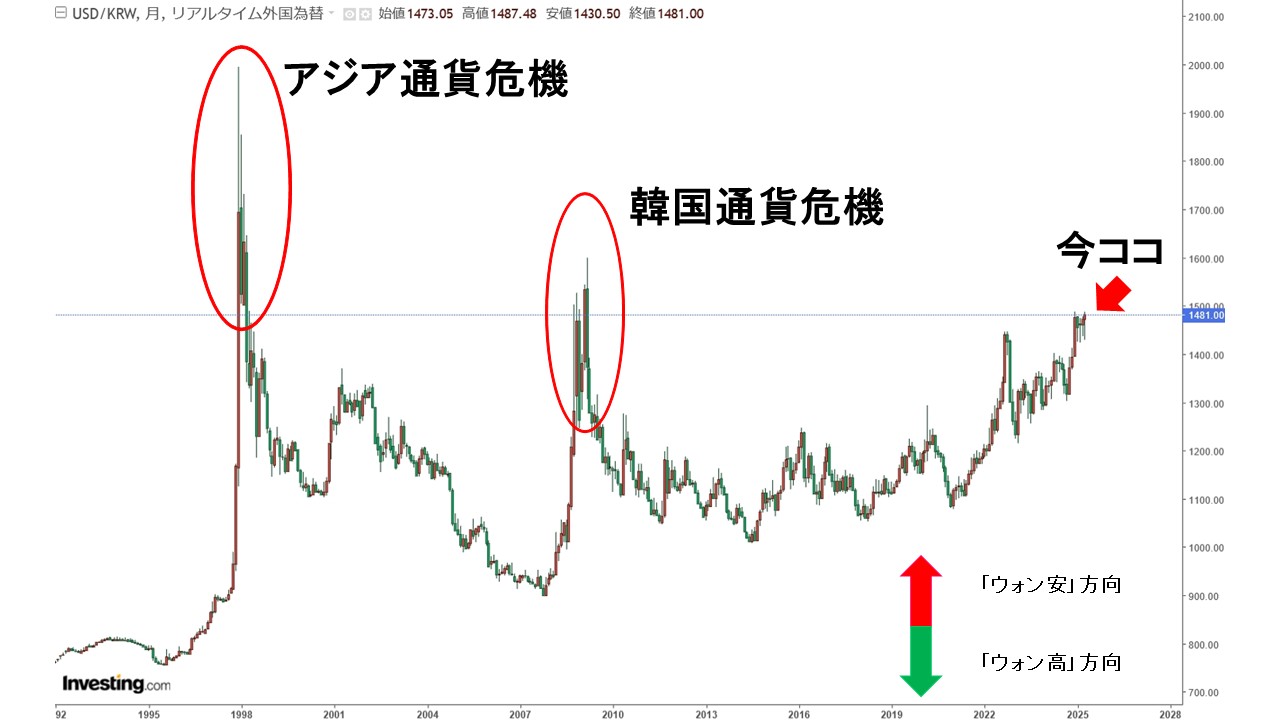 2008~2009年の韓国通貨危機時の水準までウォン安が進行しています。
