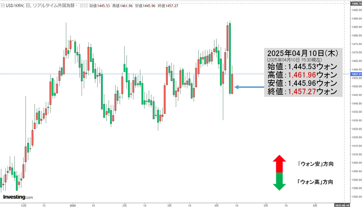 「ドルウォン」04月11日(金)初動・「1,448ウォン」