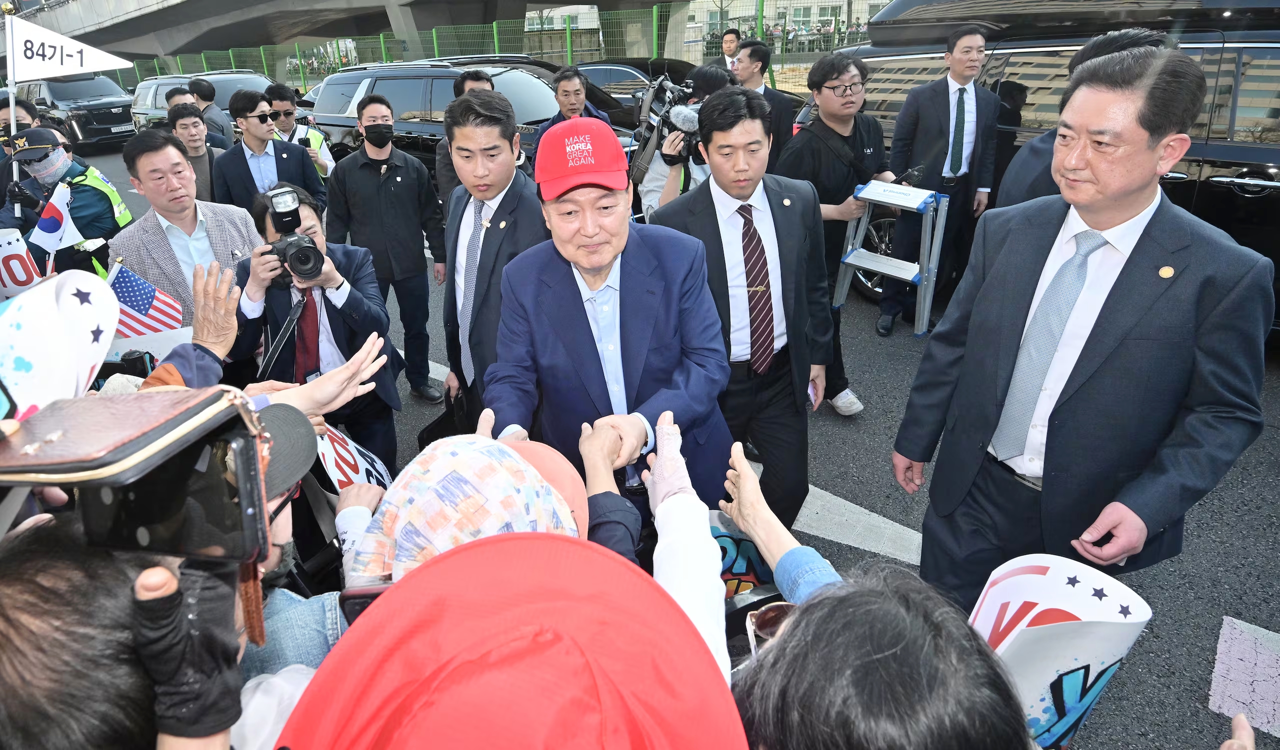 尹錫悦(ユン・ソギョル)さんは、「Make KOREA Great Again」と書かれた赤い帽子を被って、支持者との別れを惜しみました。