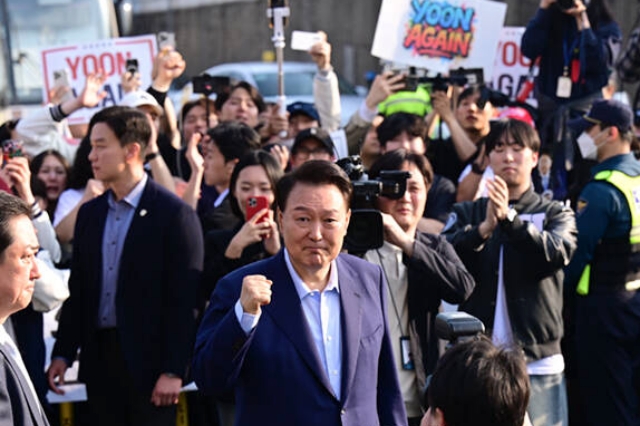 ↑尹錫悦(ユン・ソギョル)さんの後ろには支持者の掲げる「YOON AGAIN(尹 再び)」というプラカードが見えます。