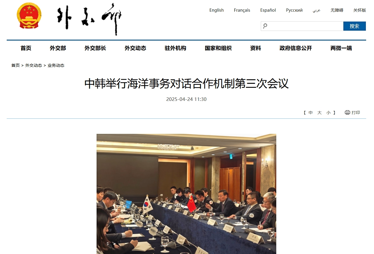 2025年04月23日、韓国ソウルで「海洋事務対話協力メカニズム第3回会議」が行われました。
