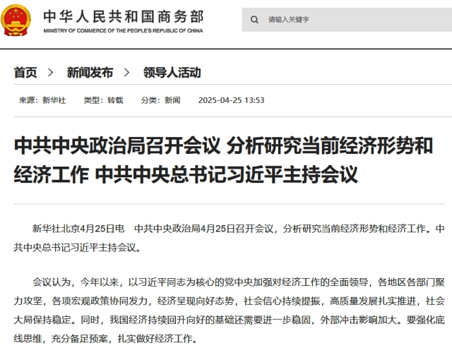 中国共産党中央委員会政治局は、現在の経済情勢と経済活動を分析・研究する会議を開催。