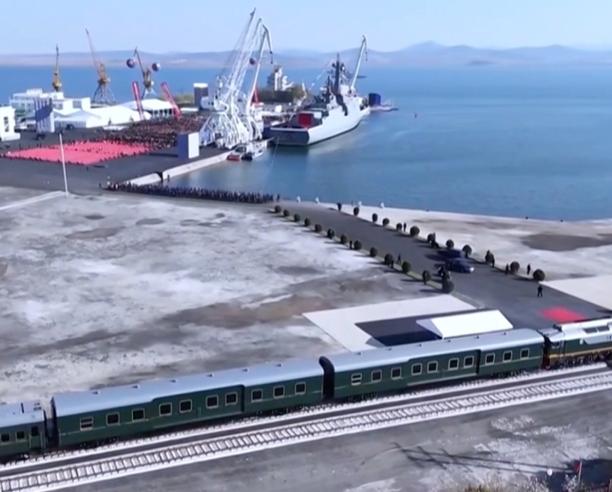↑金正恩さんは列車で港に到着し、式典に赴いた模様。
