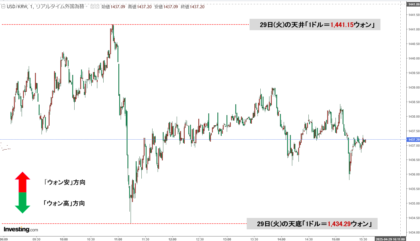 「ドルウォン」04月30日(水)初動・「1,429ウォン」1,430キリ番の戦い