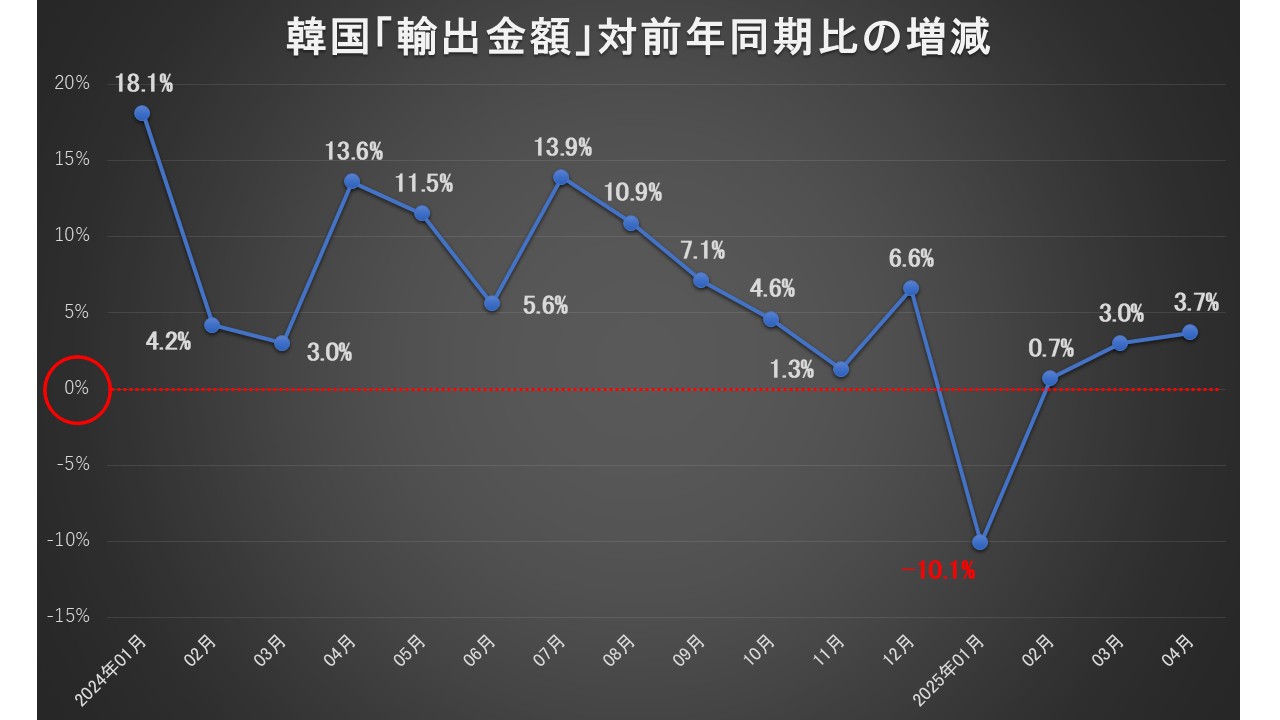 2025年05月01日、韓国の産業通商資源部が「2025年04月輸出入動向」のデータを公表しました。