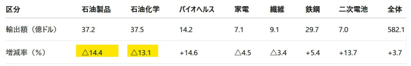 絶不調だった石油製品が「-14.4%」、石油化学が「-13.1%」と(これでも)マシになりました。何度もご紹介していますが、韓国のこの業種は精油マージンが十分に取れないと、とたんにピンチになるのです。