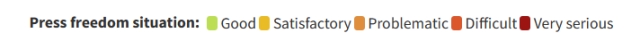 ↑「報道の自由」の度合いを示す指数はポイント化され、良い方からGood、Satisfactory、Problematic、Difficult、Very seriousの順番に評価されています。