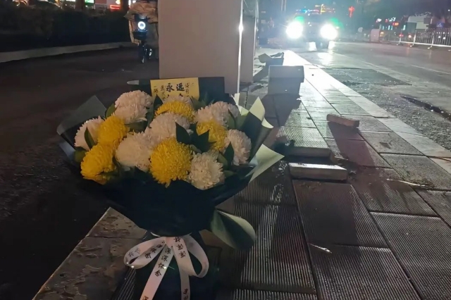 現場では市民たちが花を手向け、犠牲者を追悼している。