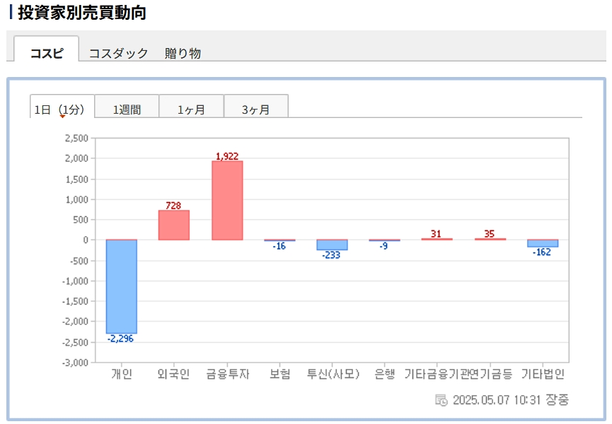 個人投資家は「2,296億ウォン」の売り越し。一方の外国人投資家は「728億ウォン」の買い越しです。