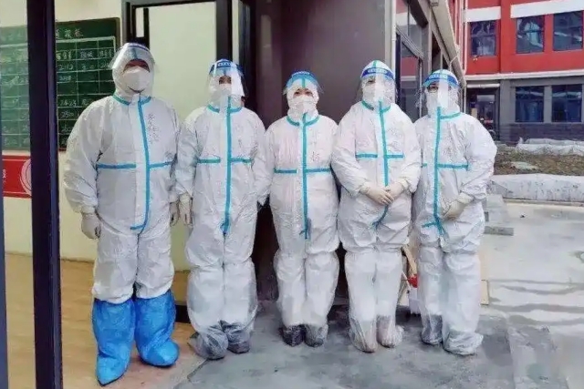↑コロナ禍の最中には日本のニュースでも流れた、防疫に当たる防護服を着込んだ皆さん。「大白」です。