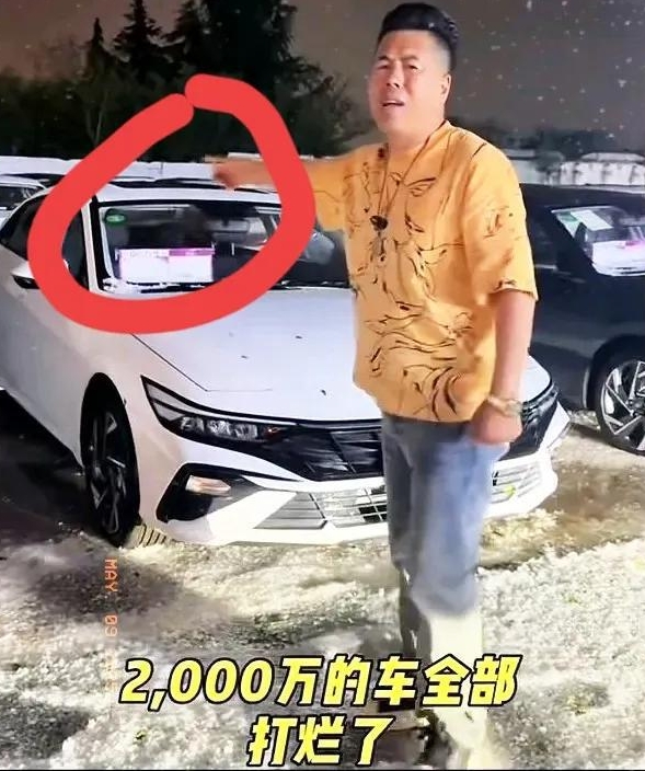 地元の有名な中古車ネットインフルエンサー「车坛老王(車壇老王)」さんは、屋外駐車場に「販売待ちの高級中古車」をぎっしりと並べられていたのですが、これがボッコボコなりました。