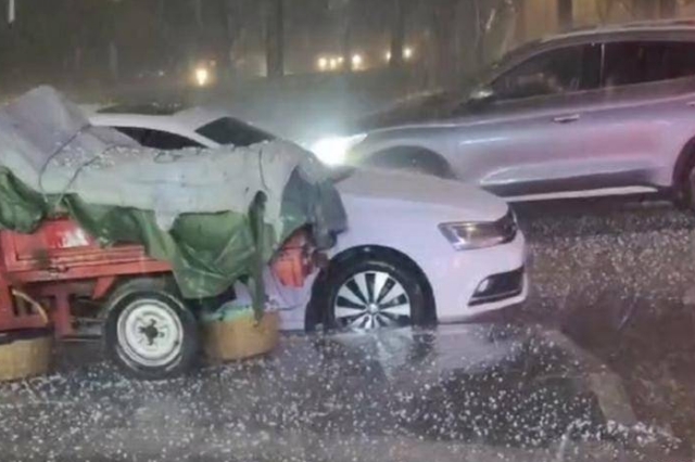 ↑西安市を大粒の雹が襲いました。しかも風速が強く、まるで弾丸のようだったとのこと。