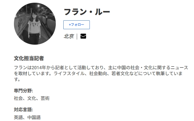 ↑執筆者は「Fran Lu」さん/スクリーンキャプチャー