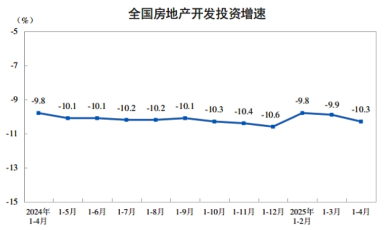 2025年01~04月期において、全国の不動産開発投資は2兆7,730億元で、前年同期比10.3%減少した。そのうち、住宅への投資は2兆1,179億元で、9.6%減少した。