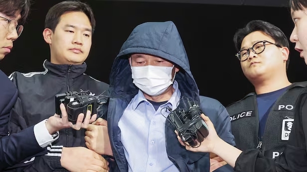 ↑身柄が拘束されて警察署に護送された犯人のチャ・チョルナム。