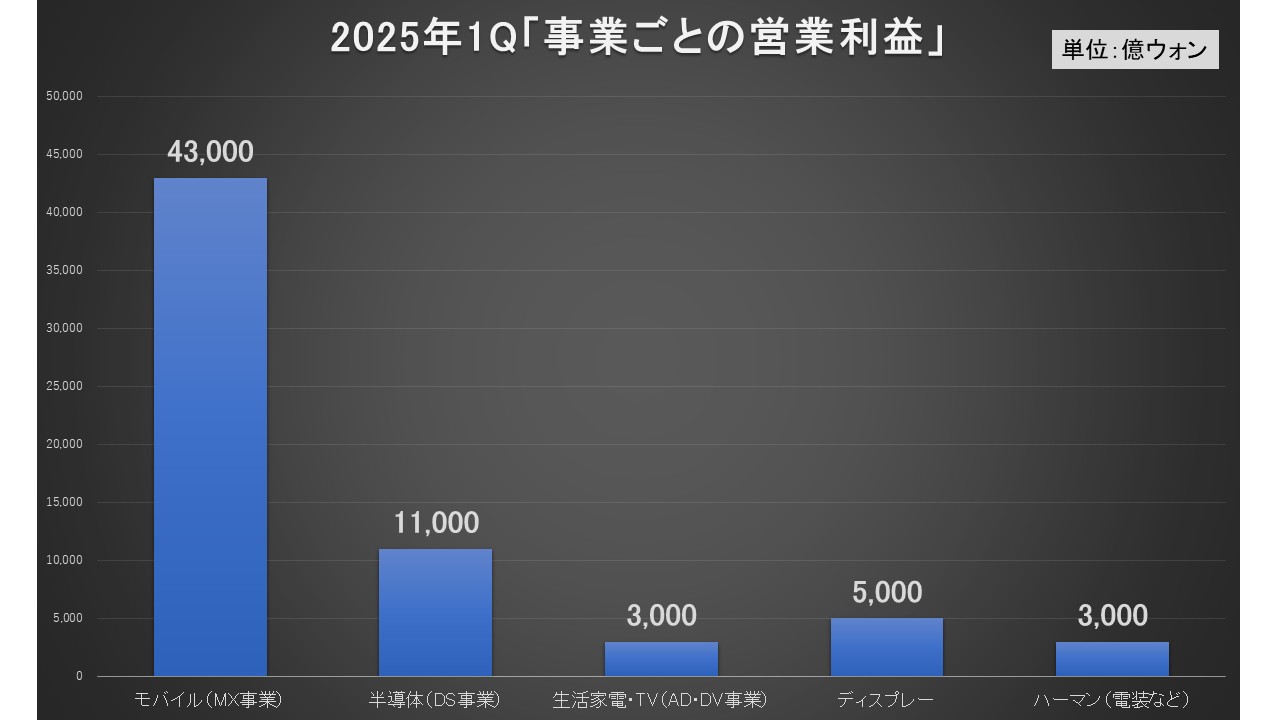 最も稼いでいるのは半導体事業ではありません。スマホなどを担当している「MX事業」で、半導体事業「1.1兆ウォン」の約3.9倍、「4.3兆ウォン」の営業利益を叩き出しています。