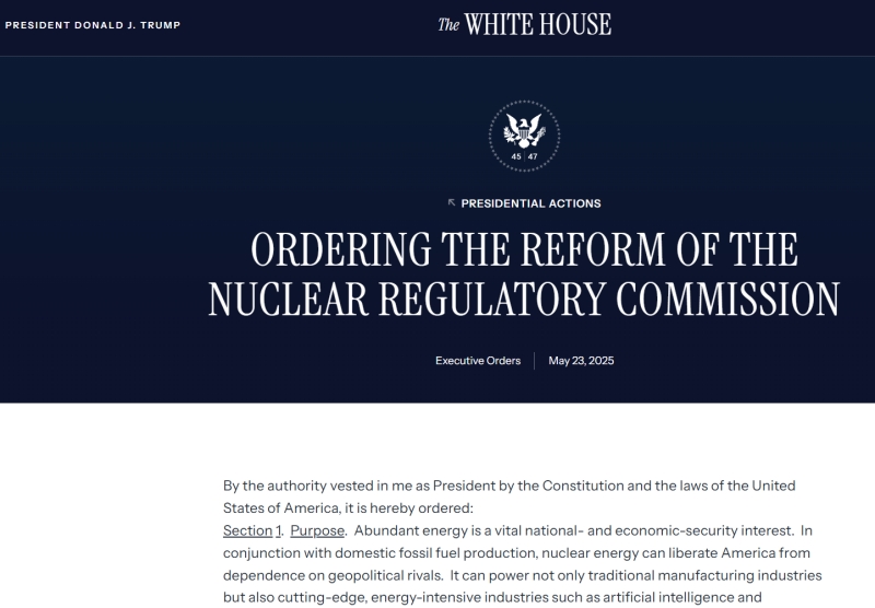 (後略)⇒参照・引用元:『White House』公式サイト「ORDERING THE REFORM OF THE NUCLEAR REGULATORY COMMISSION(原子力規制委員会の改革に関する命令)」
