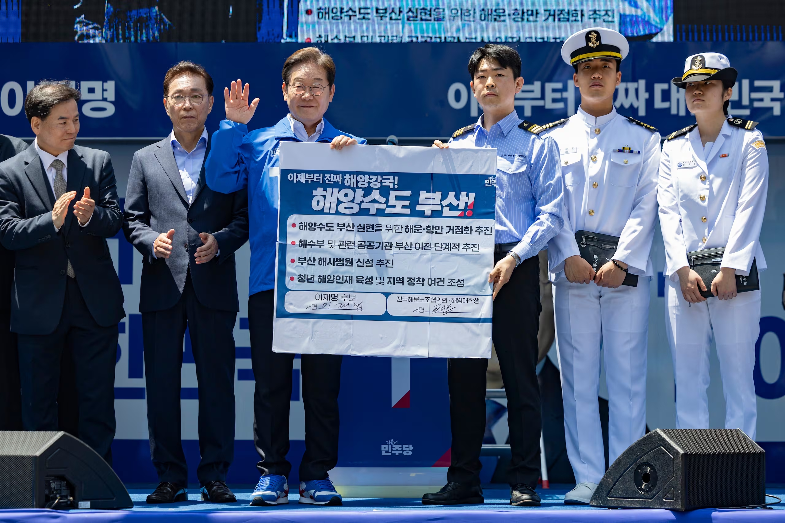 2025年05月27日、再びFacebookに「先日の釜山遊説でHMM本社の釜山移転を約束した」「この約束は今も有効であり、今後も守られるだろう」と書き込みました。