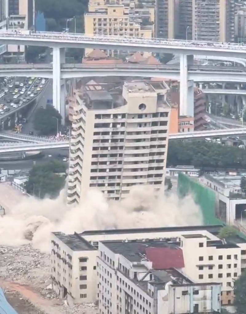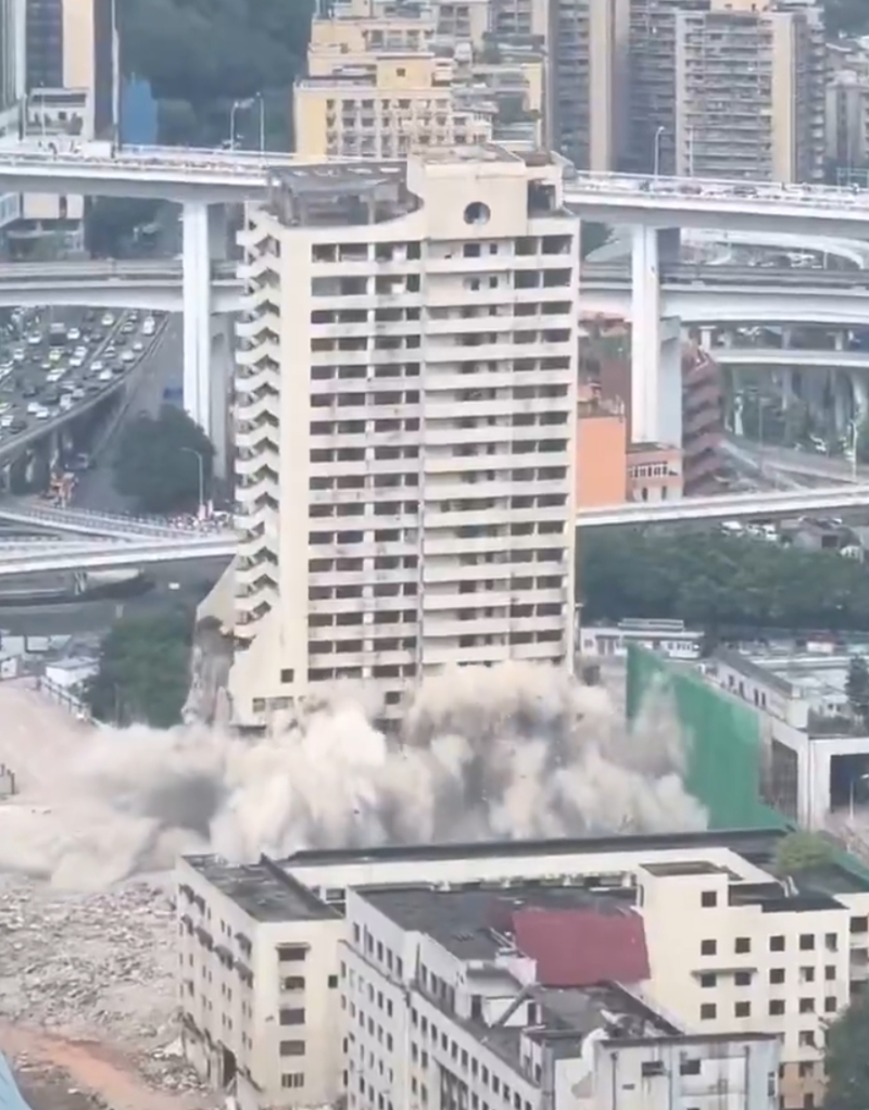 2025年05月25日、中国重慶市にある「華鉄賓館」というビルが爆破解体されました。