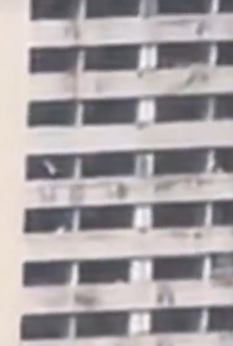 動画中の「白い服を着たホームレス」は、実際には爆破解体前に17階の窓枠にかかっていたホテルのバスタオルで、爆破解体とともに建物が崩れ落ちる際に舞い上がったものであり、誰かが慌てて走っていたわけではないという。