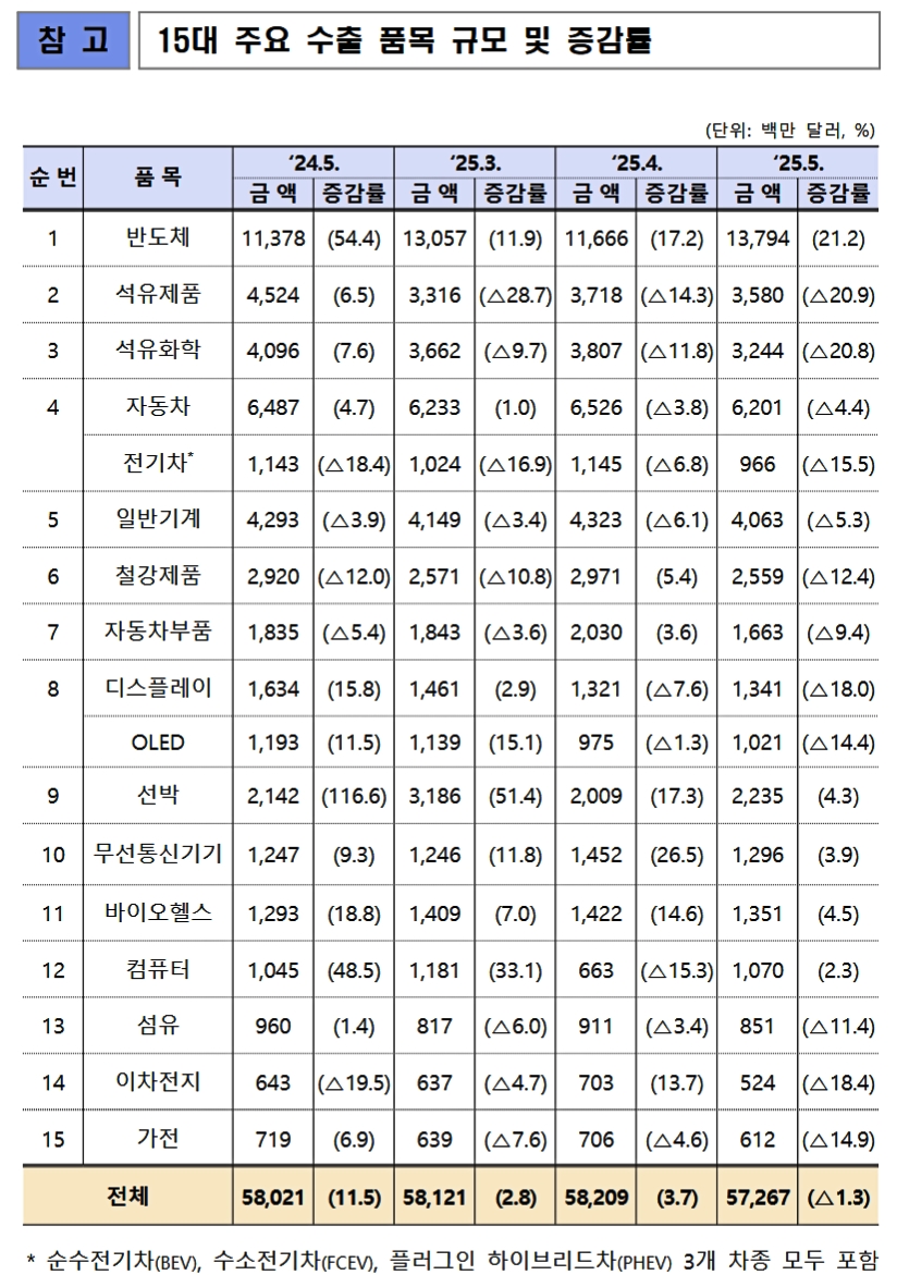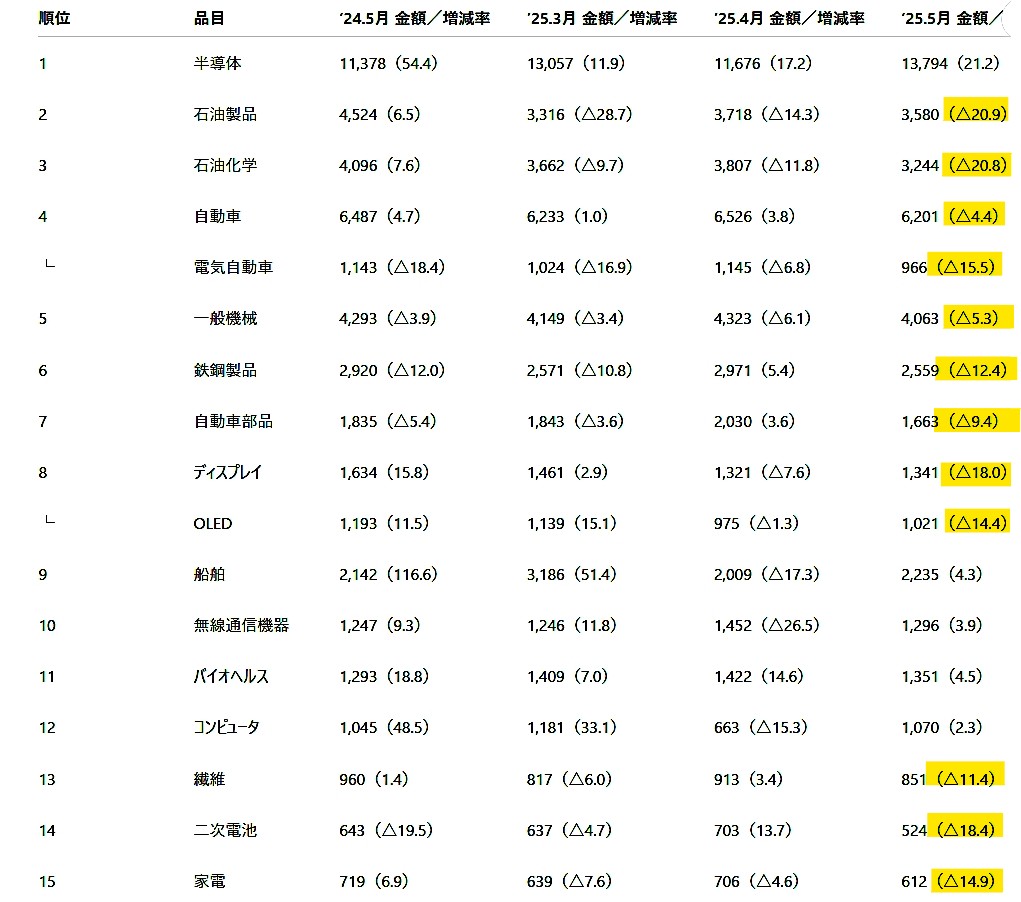 ⇒参照・引用元:『韓国 関税庁』公式サイト「’25年5月の輸出入状況」