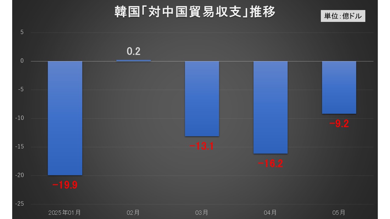 かつては300億ドル以上の対中国黒字を出していたのが信じられない数字となっています。中国が韓国から儲けるターンとなっているのです。