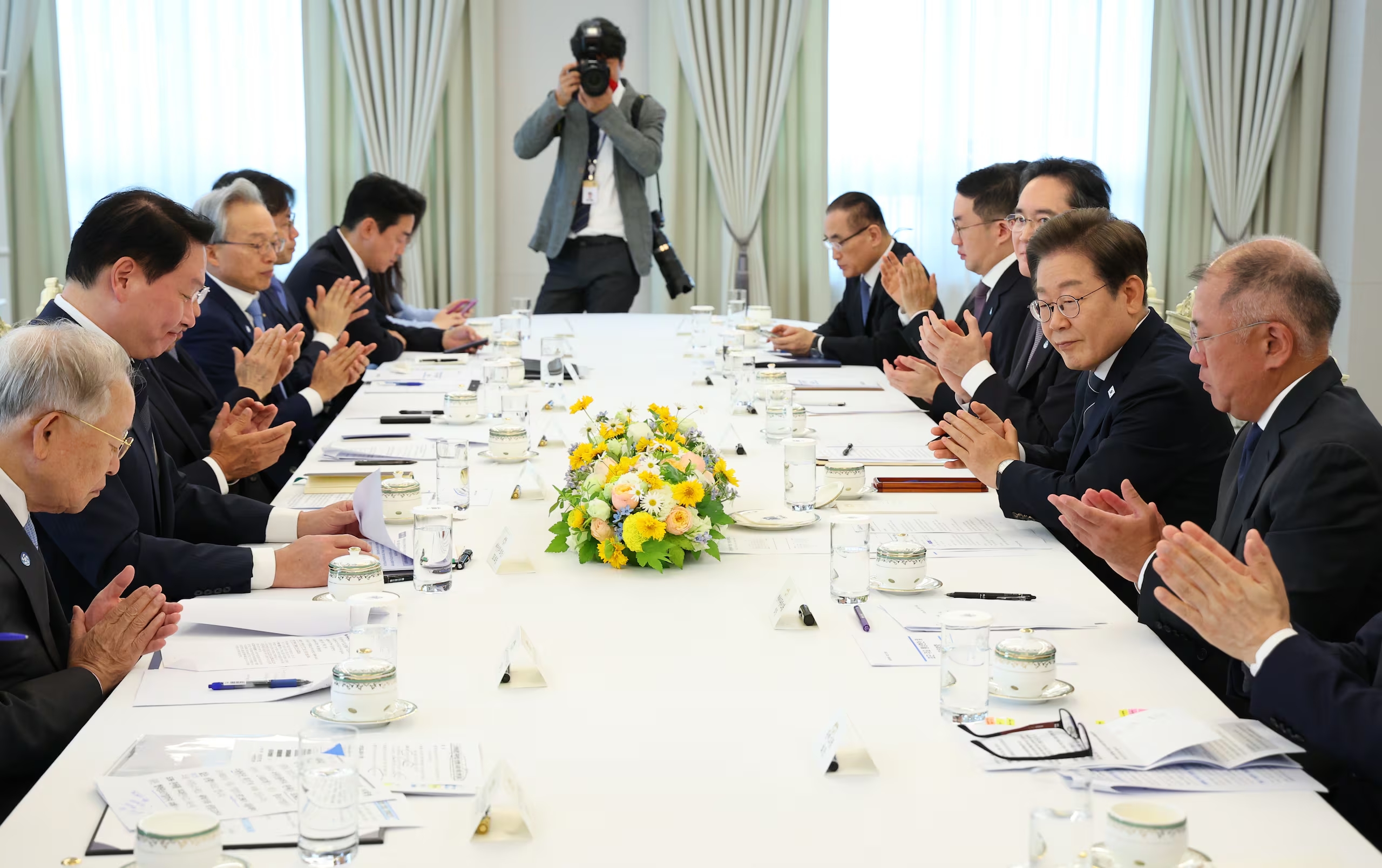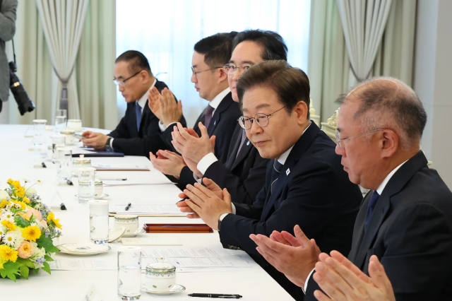 2025年06月13日、韓国の李在明(イ・ジェミョン)大統領が、5大企業グループトップと経済6団体長と面会し、懇談会を行いました。