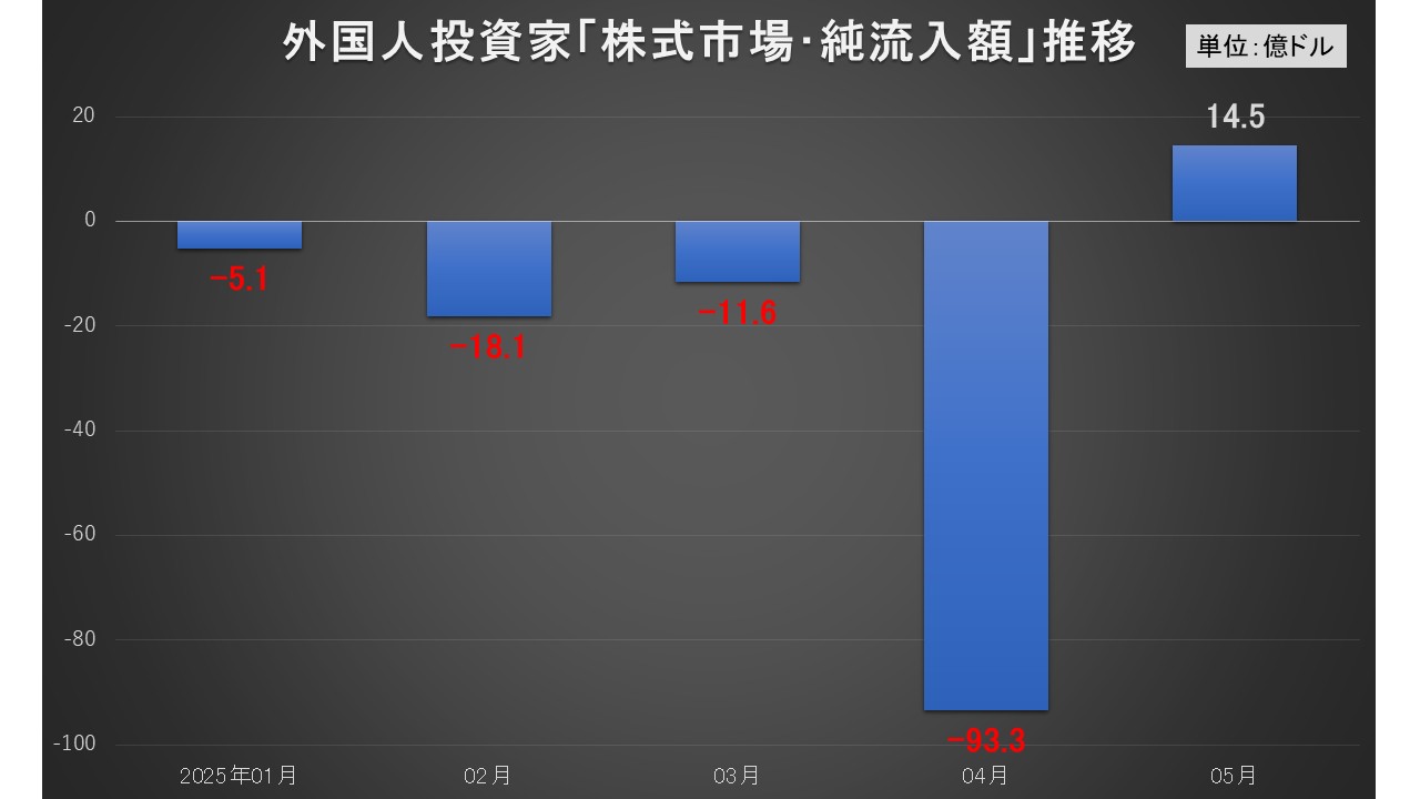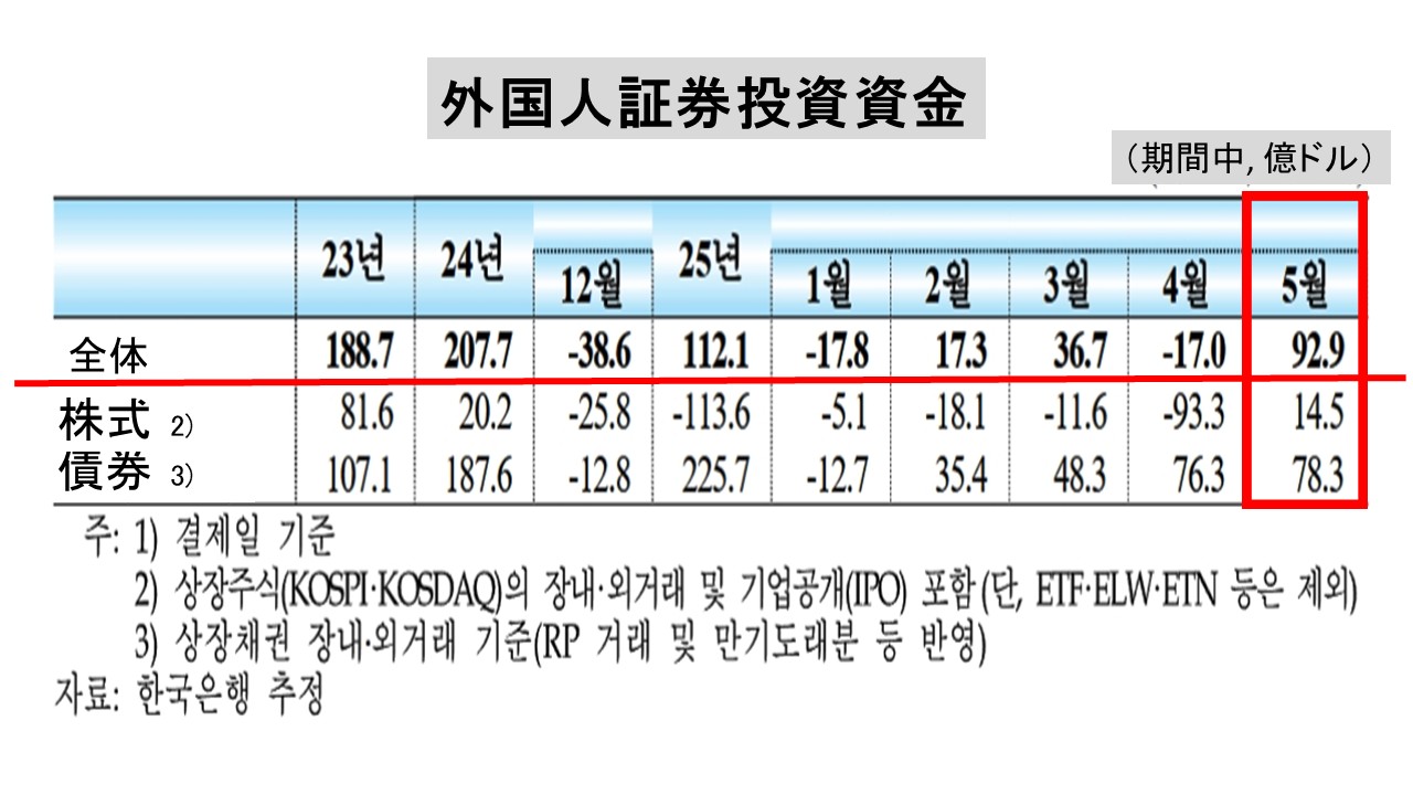 小計:+92.9億ドル⇒参照・引用元:『韓国銀行』「2025年5月の国際金融・外国為替市場動向」