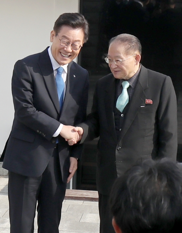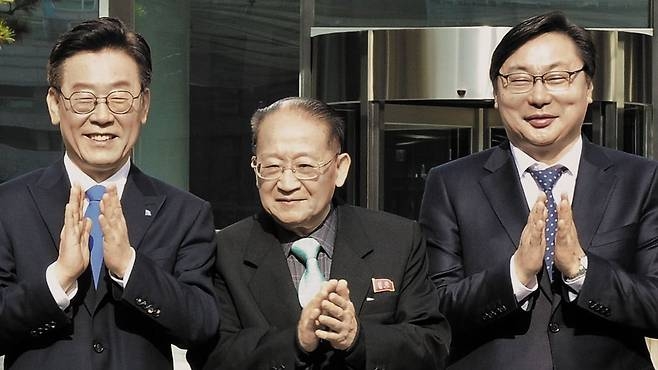 ↑2018年11月の李在明(イ・ジェミョン)知事と「朝鮮アジア太平洋平和委員会」のリ・ジョンヒョク副委員長。李在明(イ・ジェミョン)さんについては、叩けば北朝鮮関係でもっと「ホコリ」が出てくるはずです。