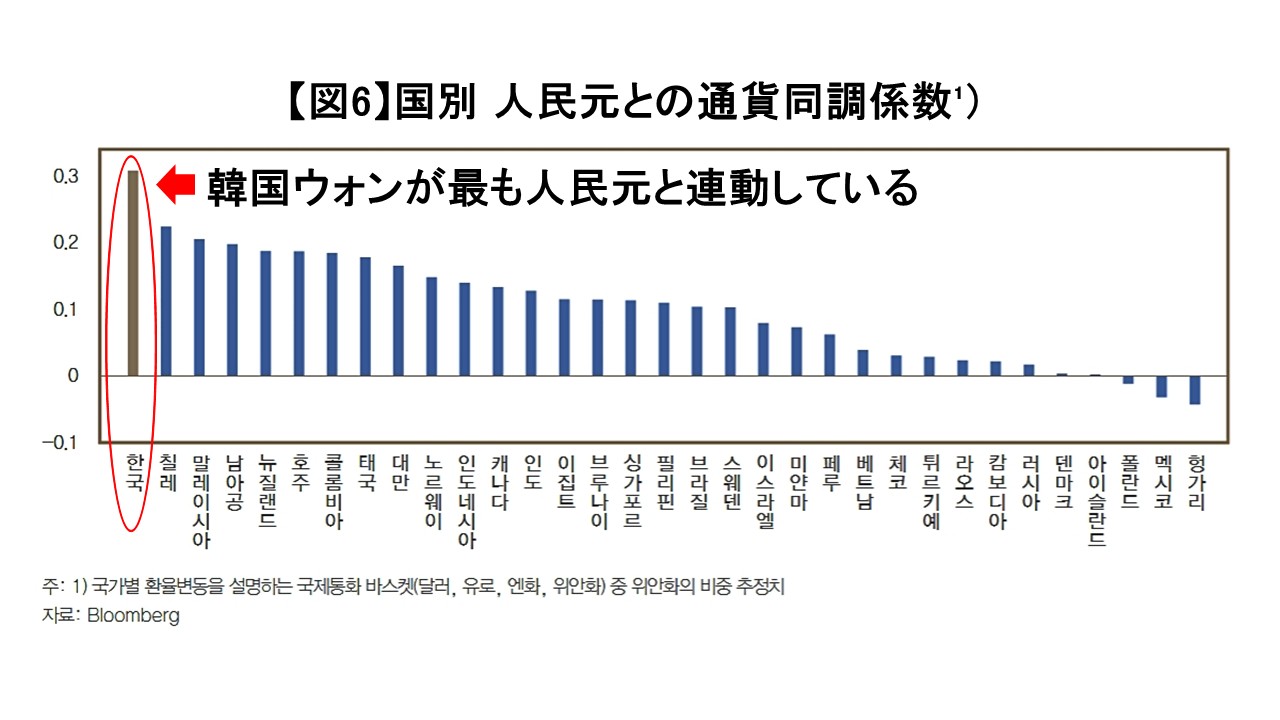 推定結果によれば、ウォンの人民元に対する同調係数は0.31で、分析対象国の中で最も高い値を示した。