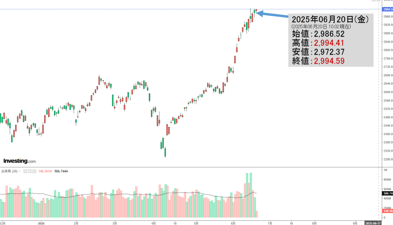 2025年06月20日(金)の韓国株式市場が締まりました。15:31現在、KOSPI(韓国総合株価指数)のチャートは以下のようになっています(チャートは『Investing.com』より引用)。やりました! 3000超えを確定して終わりまし...