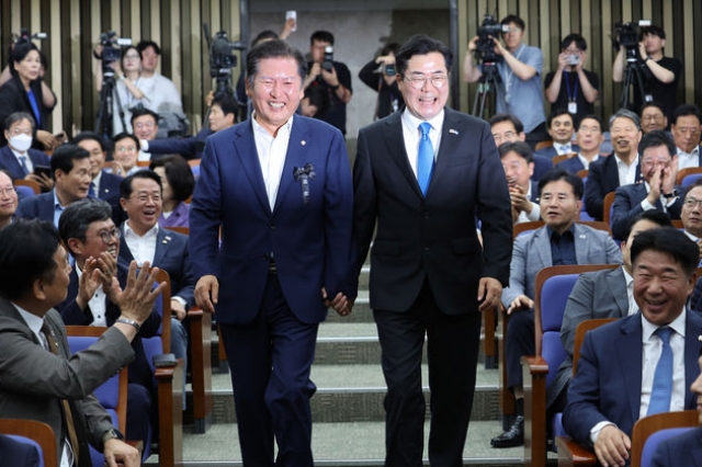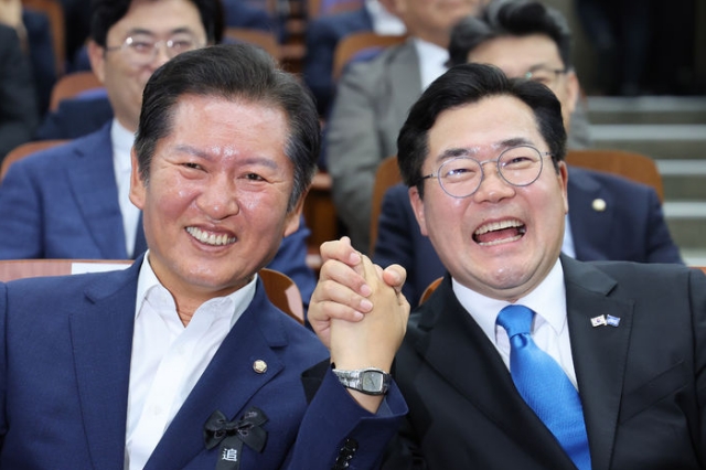 2025年06月24日、『共に民主党』の議員総会に登場した元反米テロリストの鄭清来(チョン・チョンレ)さんと朴贊大(パク・チャンデ)さんは、仲良く手をつないで入場。