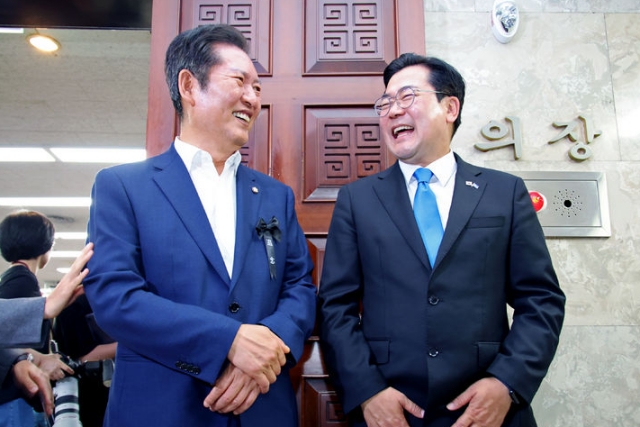 ↑「ナニ笑てんねん」という写真。左が元反米テロリストの鄭清来(チョン・チョンレ)さん。右が元院内代表の朴贊大(パク・チャンデ)さん。両者とも李在明(イ・ジェミョン)の腰巾着です。