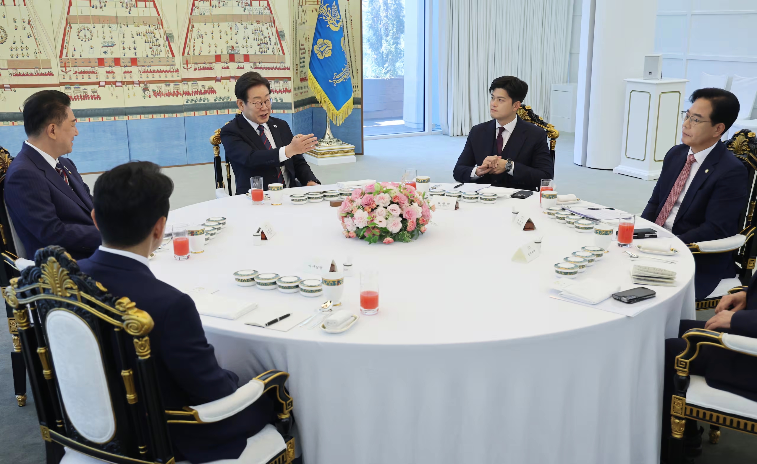 2025年06月22日、李在明(イ・ジェミョン)大統領は、(統合を装うために)与野党の指導部との昼食会を行いました。