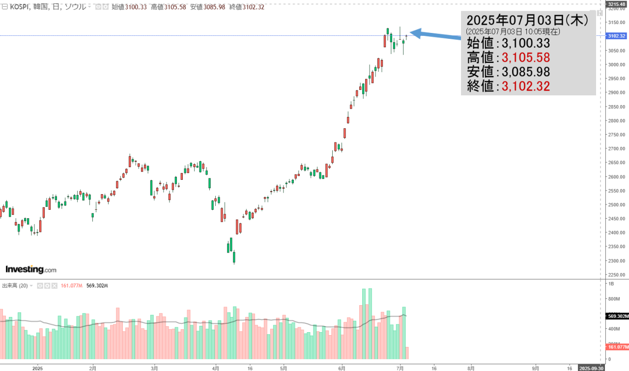 2025年07月03日(木)の韓国株式市場が締まりましたので以下の記事を制作いたしました。本記事と併せてお読み頂ければ幸いです。