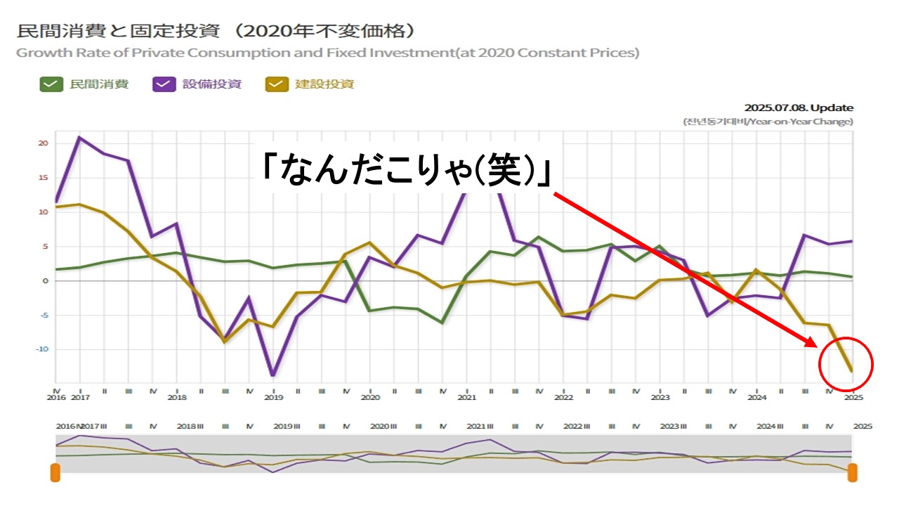 ――というわけで韓国経済が「いい」わけがなく、低迷しているのです。