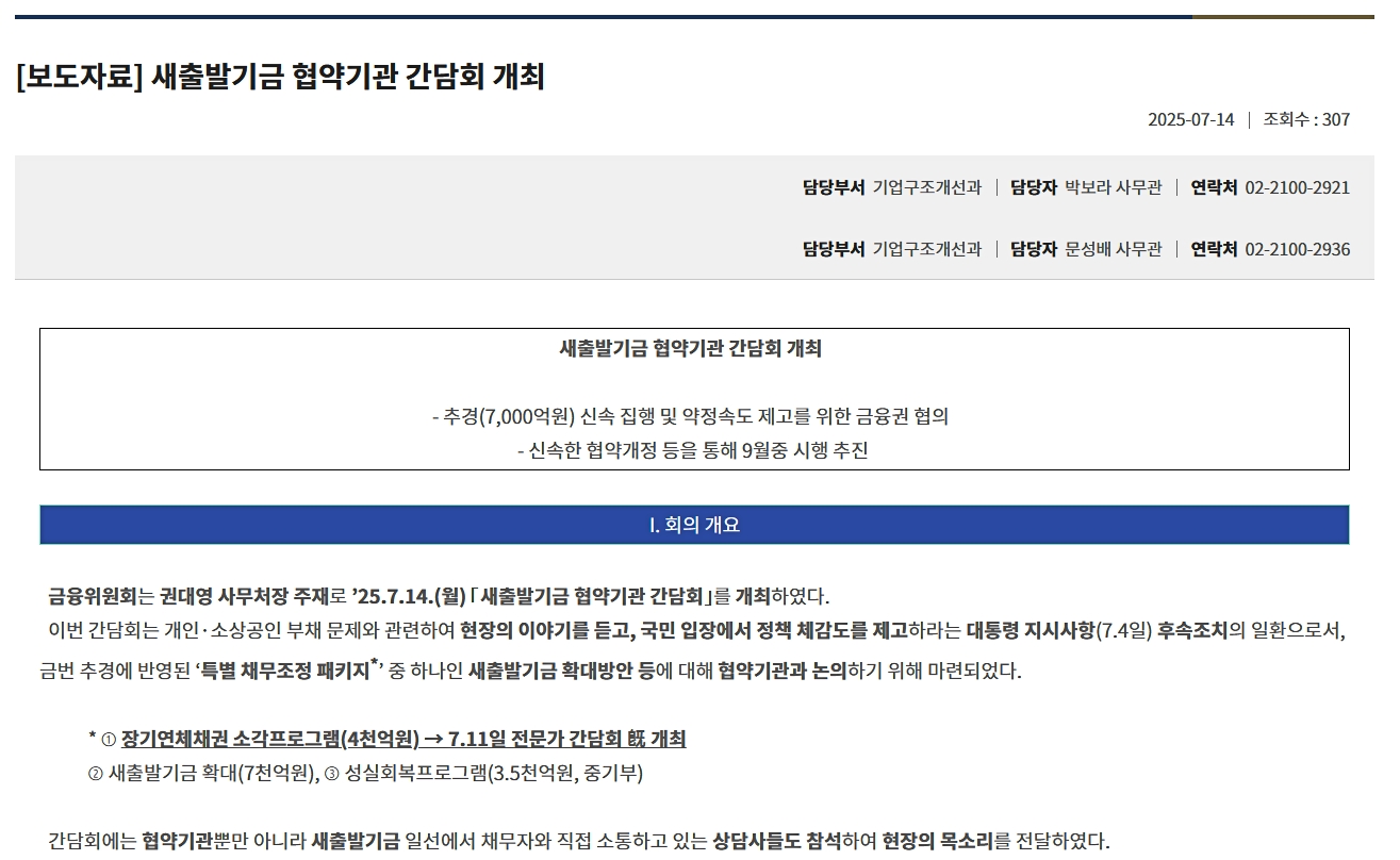 2025年07月14日、韓国の金融委員会は「長期延滞債権債務調整プログラム点検のための専門家懇談会」を開催しました。