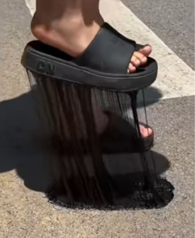 ↑路面が高温になり、サンダルの底が溶けてしまっています。