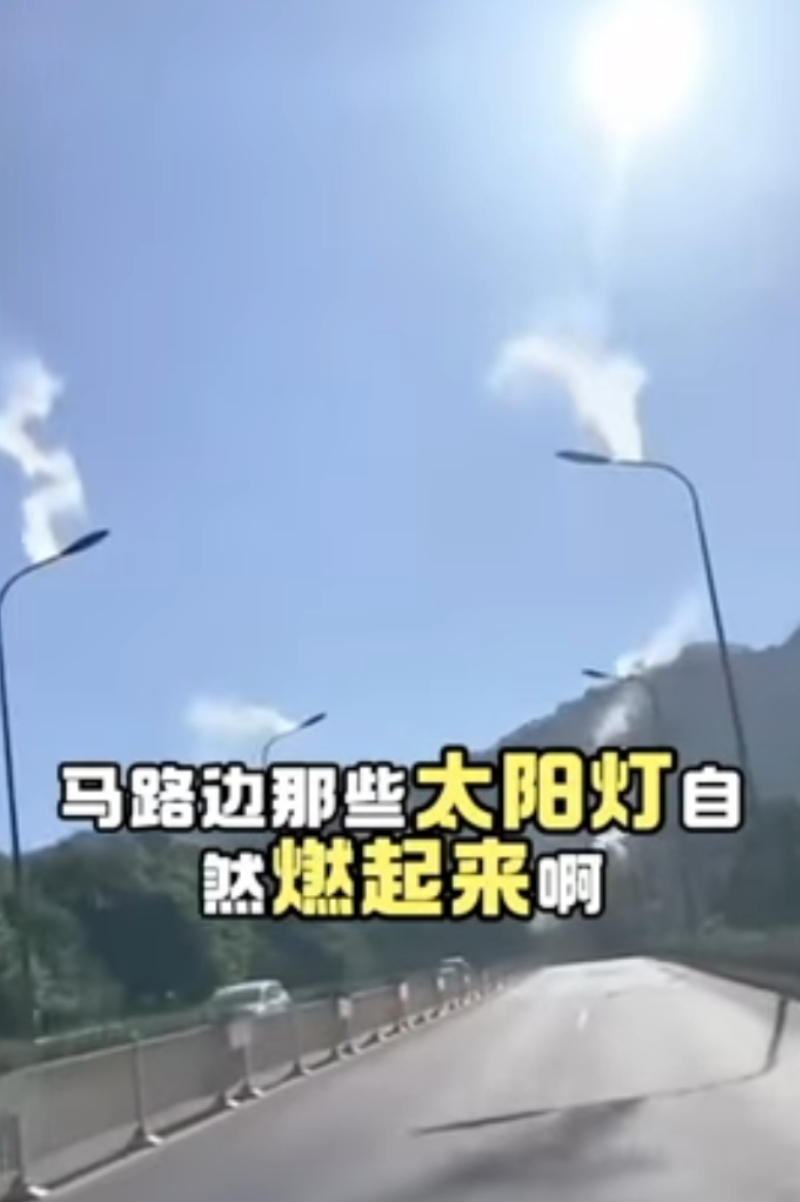 ↑街灯に電力を供給するための発電用太陽光パネルが高温で発火するという事態となっています。