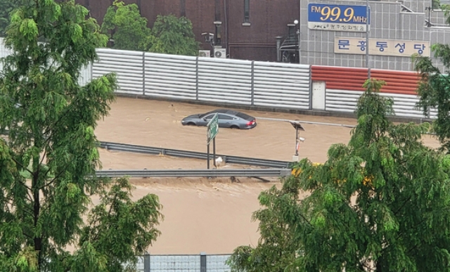 ↑光州北区湖南高速道路東光州ICが水没。光州は1時間当たり86mmの雨が降りました。