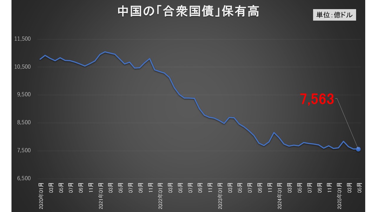 2020年01月から2025年05月までの「中国の合衆国公債保有金額」の推移は以下のようになります。