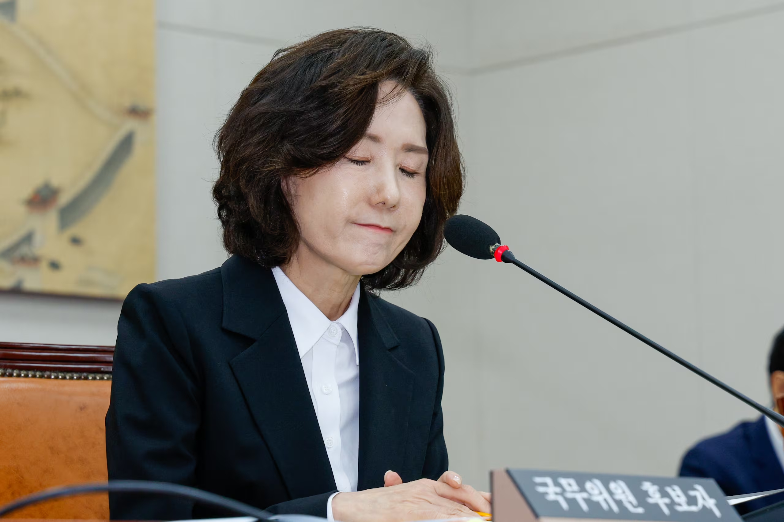 ↑国会の人事聴聞会で火だるまになった李鎮淑(イ·ジンスク)さん。