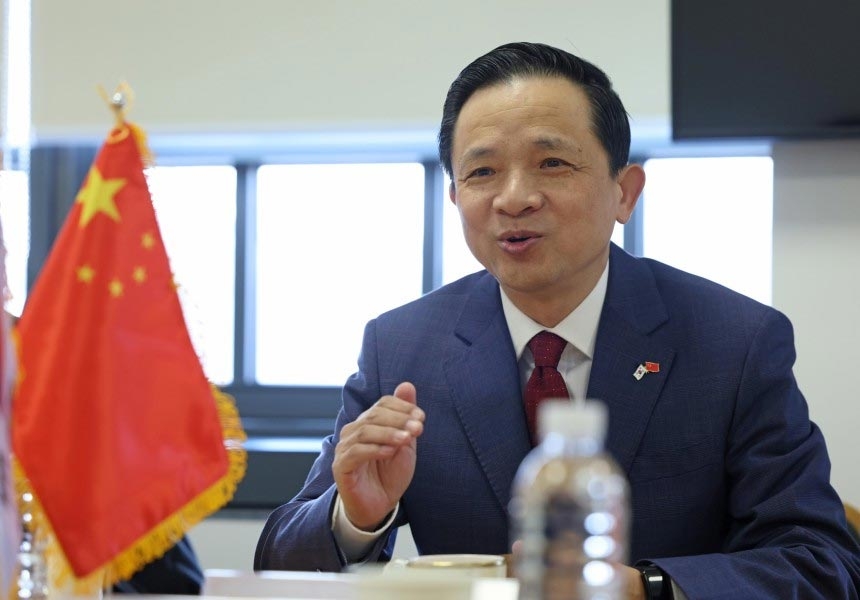 「少し前に習近平国家主席と李在明大統領が電話会談を行い、中韓戦略的協力パートナー関係をさらに高い水準へと発展させていこうという重要な共通認識を得た」