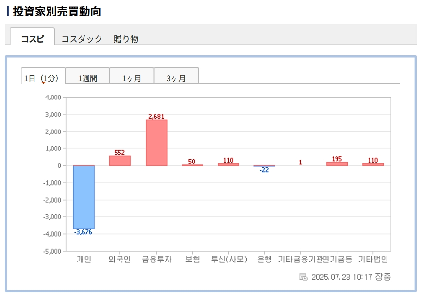 個人投資家は「3,176億ウォン」の売り越し。一方の外国人投資家は「552億ウォン」の買い越しです。